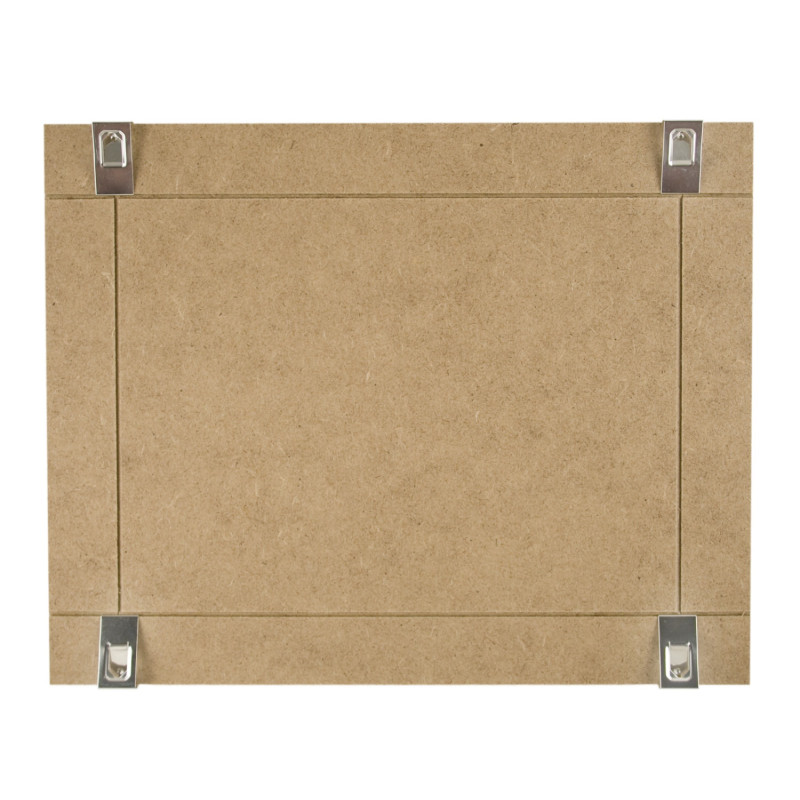The basic clipframe kit includes an MDF backing panel and clips.